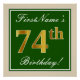 Poster Elégant, Vert, Faux Or 74ème Anniversaire + Nom