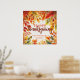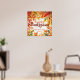 Cette affiche charmante de Thanksgiving apporte une touche personnelle à votre décor de vacances. Le design est composé d'un arrière - plan feutré et chaleureux qui évoque l'essence douillette de l'automne. Au centre, le texte blanc et gras dit "BON THANKSGIVING", faisant une déclaration joyeuse. En dessous de l’accueil principal, il y a une zone de texte personnalisable où vous pouvez ajouter votre propre message ou nom de famille. Cette fonctionnalité vous permet de personnaliser l'affiche pour qu'elle corresponde à votre célébration unique. La bordure est ornée de feuilles d'automne magnifiquement détaillées dans des tons vibrants de rouge, orange, jaune et marron, encadrant le texte central avec élégance naturelle. La combinaison des couleurs festives et du texte personnalisable fait de cette affiche un joli ajout à toute manifestation de Thanksgiving.