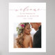 Panneau de bienvenue de mariage moderne (affiche) avec calligraphie élégante rose gold et une photo. Pour une personnalisation plus avancée de ce design, veuillez cliquer sur le lien Personnaliser davantage pour modifier la police, la taille et la couleur.