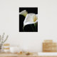 Deux belles fleurs de calla blanche brillante sur le noir.