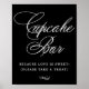 Ce romantique et intemporel "Cupcake Bar : Parce que l'amour est doux! (s'il vous plaît prenez un plaisir)" signe de table ajoute une élégance simple à tout motif classique de mariage, douche ou fête. Le luxueux modèle de script dispose d'une superbe calligraphie blanche moderne et fantaisie sur arrière - plan noir. La belle police avec une couleur arrière - plan personnalisable permet de s'adapter facilement à n'importe quel thème. Pour d'autres couleurs ou produits correspondants, veuillez visiter le magasin JustFharryn Zazzle, ou contacter le concepteur, c/o Fharryn@yahoo.com Tous droits réservés. #zazzlemade