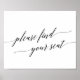 Cette calligraphie élégante s'il vous plaît trouver votre siège signe est parfait pour un mariage simple. Le design neutre est orné d'une affiche minimaliste ornée d'une typographie romantique et fantaisiste.
