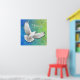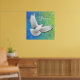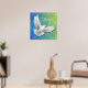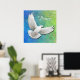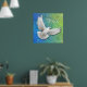 Design d'art original d'une élégante colombe blanche contre un bel arrière - plan bleu vert par l'artiste Carolyn McFann de Two Purring Cats Studio imprimé sur une affiche de qualité.