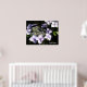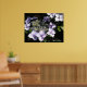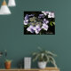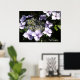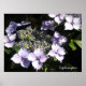 Une belle affiche ou un imprimé orné d'élégantes hydrangées mauves nichées au milieu d'un feuillage feuillu foncé. Une belle floraison pour la maison ou le bureau.
