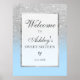 Célébrez un anniversaire marquant dans le style avec cette élégante parties scintillant argentée ombre et bleu Sweet 16 signe de bienvenue. Avec un effet de parties scintillant argent chatoyant associé à un dégradé bleu doux, ce design donne le ton à une fête glamour et moderne. Parfait pour accueillir les invités à l'entrée ou afficher comme décor tout au long de l'événement, il fait un beau souvenir après la célébration. Tout le texte est modifiable, ce qui vous permet de customiser le nom, la date et les détails d'une pièce vraiment unique. Idéal pour un Sweet sixteen chic, mais aussi suffisamment polyvalent pour d'autres anniversaires marquants ou des réunions élégantes.