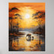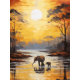 Dans la douce lueur du soleil couchant, un petit éléphant et sa mère se partagent une promenade sereine au bord des eaux tranquilles. Dans cette peinture à l'huile enchanteresse, le lien entre parent et enfant est magnifiquement représenté. La silhouette raconte un conte déchirant d'amour, de conseils et de moments paisibles que nous chérissons en compagnie de ceux que nous chérissons.
