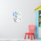 Un art de baby shower mignon avec un petit éléphant garçon aux oreilles bleues tenant des ballons aux couleurs bleu, blanc et argent. Conception de baby shower adorable avec étoiles bleues et crème autour. Personnalisez en changeant le texte et les détails.