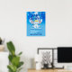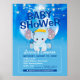 Poster Eléphant Bleu Cute & Ballons Bébé Party Flyer