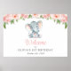 Poster Eléphant, Fleurs Roses, Accueil Premier Anniversai
