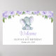 Poster Eléphant, Fleurs violettes, Accueil pour le premie