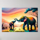 Une peinture d'éléphant qui fait chaud au coeur capture le lien entre une mère et un enfant dans le paysage vibrant de l'Inde. La scène joyeuse reflète une vie heureuse dans le royaume animal, où les éléphants majestueux se promènent librement. Cette oeuvre d'art dégage un charme fantaisiste tout en célébrant la beauté de la faune et les relations qui s'épanouissent dans la nature. Peinture d'art pour votre décor maison. Vous pouvez acheter avec cadre et papier d'art. Taille de l'image du fichier original : 40'x27' pouces (300 ppp).