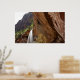 L'un des sites les plus célèbres du parc national de Sion est la série de piscines d'émeraude. Cette photo montre la cascade qui coule de la piscine d'émeraude du Moyen vers la plus basse de presque sous les chutes. Le vert pâle des feuilles printaniers sur les arbres contraste agréablement avec les tons rouge et orange des rochers. Cette photo est également présentée comme le fond d'écran panoramique "Emerald Pool Falls III" de MLeWallpapers.com. Consultez notre magasin pour plus de photos de Zion National Park et d'autres parcs nationaux américains.