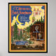 Grande affiche avec une couverture vintage en feuille de musique avec une vieille Buick en direction des montagnes à un château dans le ciel.