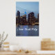 Affiche Colorée Avec L'Empire State Building S'Éclairant En Bleu Et Le Skyline New York City À Dusk