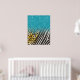 Empreinte de léopard doré à la mode, rayures de zèbre noir, effets de douche bleu paon. Impression d'image