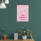 Affiche personnalisée avec une adorable image d'empreintes de bébé rose avec un contour blanc épais. Pois blancs sur un arrière - plan rose derrière l'illustration.