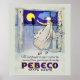 Une publicité magnifiquement illustrée pour Pebeco dentifrice. Dans les tons bleus, avec une belle dame dans une magnifique salle de bain regardant un chat noir contre une pleine lune jaune.