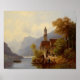 Image vintage de l'église catholique à côté d'un semblable et de montagnes. Beaux-arts du peintre allemand Anton Doll.