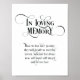 Poster En souvenir affectueux Panneau de table commémorat