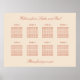 Terracotta Script 8 Table Mariage Seating Poster, s'il vous plaît personnaliser les noms du couple et les noms des invités ainsi que l'un des autres textes que vous souhaitez personnaliser. Une affiche élégante avec un élégant texte en terre cuite sur un bel arrière - plan de couleur beige paille.