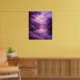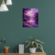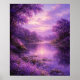 An enchanted landscape featuring a calm river reflecting the purple and pink hues of a sunset sky. The surrounding trees and flowers display rich, vibrant tones that evoke fantasy and tranquility. This artwork aims to capture a magical moment in nature, as if taken from a dreamlike world.