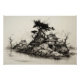 Illustration numérique d'un dessin de paysage d'un paysage dessiné à l'encre noire sur du papier blanc.