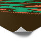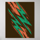 L'oeuvre est composée d'un arrière - plan brun foncé avec des touches audacieuses et déchiquetées d'orange rougeâtre et de vert turquoise, qui se croisent dans un motif dynamique et éclair. Les points demi-teintes et les textures éclaboussées rehaussent les bords, ajoutant énergie et intensité brutes. Le contraste entre le brun terreux, l'orange vif et le vert turquoise éclatant crée une composition abstraite d'inspiration urbaine qui se sent à la fois agressive et électrisante.