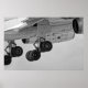 Photographie de clôture monochrome haute définition du train d'atterrissage d'un avion de ligne juste avant de se poser.