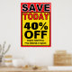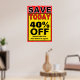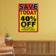 (différentes tailles disponibles). signe en gras pour montrer vos économies aujourd'hui. Utilisez ce modèle pour n'importe quel montant de remise ou tout type de vente. Ne faites pas de panneaux de magasins à partir de Magic Marker. Elles ont l'air bon marché. Ça a l'air professionnel.