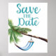 Save The Date Tropical Paradise - Doté d'un hamac rayé vintage accroché sur un grand palmier mariage/Fiançailles ou affiche de célébration générale.