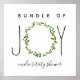 Une affiche baby shower illustrant l'illustration d'une couronne verte incorporée dans l'expression "paquet de joie". Personnalisez le nom. Des invitations assorties à la douche pour bébé et des articles de coordination sont disponibles chez Jill's Paperie.