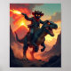 Poster Epic Cowboy Cat Riding Dinosaur | Fantasy Sci-Fi