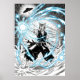 Poster Epic Manga Style Cat Warrior Energy Blast UFO