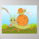 Tous les enfants aiment les animaux ! Et certains comme de très petits animaux ! Qu'est-ce qui pourrait être plus amusant que d'avoir une fête d'anniversaire sur le thème de l'escargot ? Ou obtenir un cadeau d'anniversaire d'escargot ? Si votre enfant aime les bugs, ce produit fera une surprise amusante pour une journée spéciale. Cette illustration présente quelques mignons escargots souriants et amicaux, des champignons et des champs verts avec des fleurs. Une célébration des petits miracles de la nature !