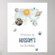 Célébrez le jalon spécial de votre enfant avec cette affiche d'anniversaire magique sur le thème de l'espace extra-atmosphérique. Avec des planètes imaginaires, la lune et les étoiles en couleur marine et or. Cet espace extra-atmosphérique Anniversaire Galaxy Sun Moon Stars and Planets Welcome Posters sont parfaits pour une simple fête d'anniversaire. Le design moderne et fantaisiste met en scène un arrière - plan bleu marine couleur aquarelle orné d'un soleil éclatant jaune, d'une lune grise souriante, de planètes aux couleurs pastel et d'étoiles dorées éparpillées.