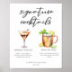 Cette liste de cocktails chic et signature propose une typographie noire simple au-dessus de 2 boissons et leurs ingrédients pour votre bar mariage. Un expresso martini et un dessin moscovite ajoutent une touche cool à l'affiche du menu du bar. Complétez avec les noms du couple et la date de leur réception.