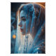 Portrait d'imaginaire rapproché d'une jeune femme calme et élégante, en profil à gauche, illuminée par un double éclairage cinématographique, une lumière chaude brillant vers le haut par le bas et une lumière cyane cool descendant d'en haut. Elle porte un voile bleu brillant semi-transparent brodé de délicats détails pétillants. La poussière de parties scintillant fine l'entoure, dérigeant à travers la fumée légèrement curling, renforçant l'atmosphère mystique. La toile de fond, sombre et sobre, est ornée de braises brillantes qui ajoutent de la profondeur et une ambiance magique. Rendu dans un détail hyperréaliste avec des textures faciales pointues, capturant une présence sereine mais enchanteresse et puissante.