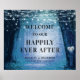 Evermore | Forêt de fée enchantée | Suite Faire-part de mariage bleu marine. Bois d'imaginaire magique, avec des lampes éthérées à cordes et des orbes de féerie brillant et brillant tout autour. L'image a une lueur lune, pour une soirée romantique lieu mariage éclairé. Ce design envoûtant fera le bonheur de vos invités ! Le texte personnalisable est soutenu par une lumière éclatée à travers les arbres, et entouré de grands chênes. L'arbre principal a une forme de coeur sculpté, avec un monogramme que vous pouvez personnaliser avec vos lettres initiales personnalisées. Evermore est un design de mariage utopique conte de fées, parfait pour votre mariage extérieur et réception. Disponible en plusieurs coloris pour correspondre à votre décor mariage. - Réception De Mariage Heureusement Jamais Après L'Affiche de bienvenue! ~ Regardez ma boutique pour voir l'ensemble de la suite pour ce design!