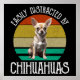 Facilement Distrait Par Les Chihuahuas. Cet accessoire de chihuahua drôle et mignon est un cadeau amoureux des chiens parfait pour un homme, une femme, des ados et des enfants qui possèdent et aiment un chien chihuahua. Si vous êtes le fier propriétaire d'un chihuahua animal de compagnie, et que vous aimez les chiens et les chiots, ce design est pour vous! Comprend un joli dessin d'un chihuahua dressé contre un arrière - plan de coucher de soleil vintage rétro en détresse.