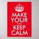 Créez votre propre affiche Conserver calme en rouge et blanc avec ce modèle personnalisable. Vous pouvez changer l'arrière - plan de rouge à n'importe quelle autre couleur et aussi redimensionner le texte en cliquant sur le bouton "customiser".