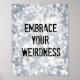 Citation motivationnelle drôle : Embrassez vos empreintes et affiches étranges. Cette impression présente un motif noir et blanc avec des étincelles de livre (qui peut être enlevé pour une simple citation seulement).