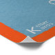 Fa La La Vintage Design de notre collection de vacances Keller Kards présente un linoléum unique imprimé à la main d'un feu de yuletide rouge avec la fumée blanche épelant Falala sur un arrière - plan bleu avec une bordure rouge. Chantez fort cette saison de Noël et achetez ce cadeau unique pour toute personne sur votre liste de cadeaux qui aime aller faire du covoiturage ou s'asseoir près d'un feu de bois confortable chanter.