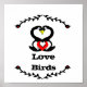 Deux oies noires se faisant face et s'affrontant, avec la doublure du cou formant un coeur d'amour. Le corps est un peu abstrait en forme. Au-dessus et au-dessous, les oiseaux sont bordés de vignes noires et les oiseaux noirs sont les pointes, avec les yeux rouges. Comme texte par défaut qui dit : "Inséparables", mais il peut être changé à tout ce que vous voulez.