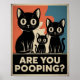 Cette affiche humoristique "Are You Pooping ?" présente un chat fantaisiste à l'expression étonnée ou curieuse, associé à un texte audacieux de style vintage. Le design rappelle les affiches de propagande classiques, créant un mur inattendu et accrocheur. Parfait pour les amoureux de les chats avec un sens de l'humour, cette affiche ajoute une touche décalée à tout espace et est sûr d'allumer des conversations... humour félin, salle de bain pour chat, salle de bain pour chat, art animal, chats, aquarelle, peinture animale, peinture pour chat, toilette, mème original. aquarelle, caca, chaton, drôle de chat, mur de toilettes, animal, toilettes, amoureux des chats, rétro, propagande Vintage, poster humoristique, art du chat, Décor original,