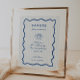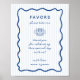 Main bleue Whimsical dessinée, mariage favorise poster. Caractéristiques, bleu clair rayé motif arrière - plan et français Royal bleu de coordination texte et éléments. Les polices et les couleurs d'illustration peuvent être customisées.