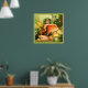 Fée blonde aux yeux bleus embrassant un grand champignon amanita pour customiser avec votre propre salutation, nom, message, etc