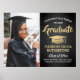 Ajoutez une touche personnalisée à une fête de remise des diplômes d'un collège ou d'un lycée avec une photo personnalisée en noir, or et blanc 18"x24". Image et tout le texte sont simples à customiser. Le design comprend un arrière - plan métallique en faux noir brossé, un casquette de tableau de mortier en faux papier, une typographie moderne, une calligraphie stylisée, et une photo du diplômé, comme une image ou une image de haut niveau de la cérémonie de début. Veuillez noter que l'or est imprimé en couleur et non en papier. Ce panneau de remise de diplômes est une façon élégante de célébrer la journée spéciale. Félicitations au diplômé !
