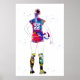 Vibrant watercolor-style silhouette of a female volleyball player holding a ball, blending energy and elegance. The dynamic color splashes create a striking design perfect for athletes and sports enthusiasts.