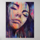 Laissez tomber vos murs et sentez l'afflux de tranquillité qui vous entoure avec cette oeuvre d'art contemporain de rue. Cette peinture acrylique mixte de médias présente un portrait réaliste abstrait et coloré d'une femme dans une profonde contemplation, noyant le chaos du monde - avec des teintes vives de violets, pêche, bleus et roses. D'abord peint sur toile étirée avec des acryliques et des encres d'archives.