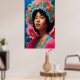 Image d'une afro-dame avec un casquette d'étoiles de mer. Il s'agit d'une oeuvre d'art générée par l'IA avec un thème floral.